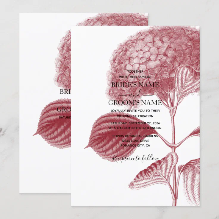Elegant Burgundy Hydrangea Wedding Invitations | Zazzle