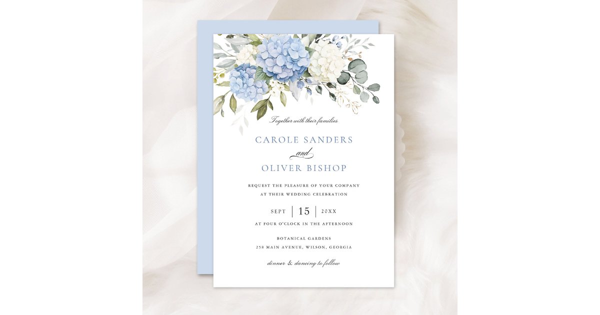 Elegant Blue Hydrangea Floral Wedding Invitation | Zazzle