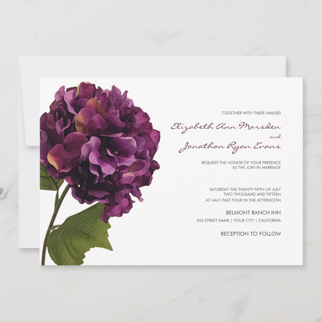Elegant Purple Hydrangea Wedding Invitations | Zazzle