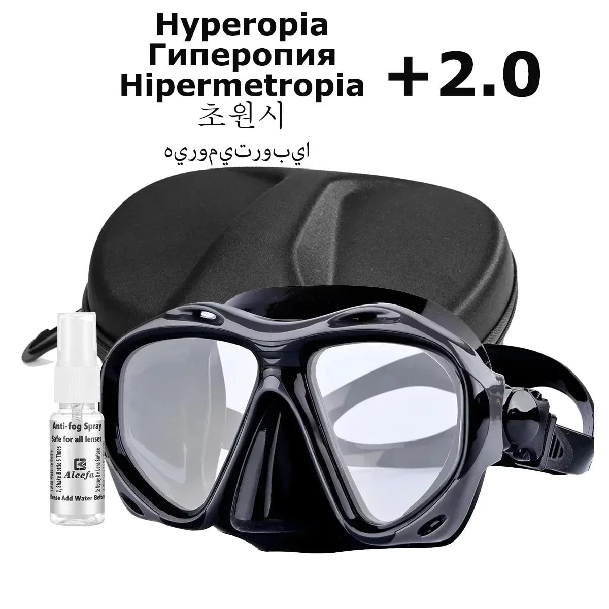 Hyperopia Diving Mask with Tempered Glasses Lens. Antifog Spray ...