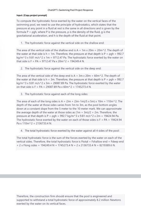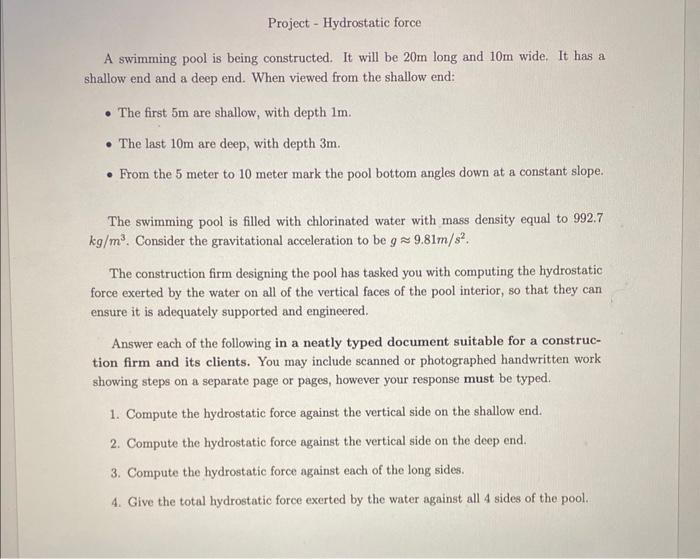 Solved Project - Hydrostatic force A swimming pool is being | Chegg.com