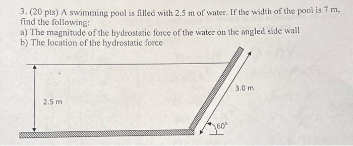 Solved 3. (20 pts) A swimming pool is filled with 2.5 m of | Chegg.com