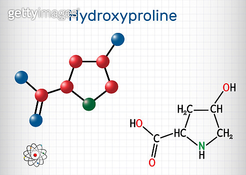 The 3D molecular structure of hydroxyproline is depicted using a ball ...