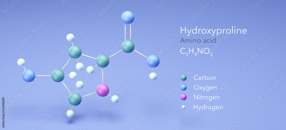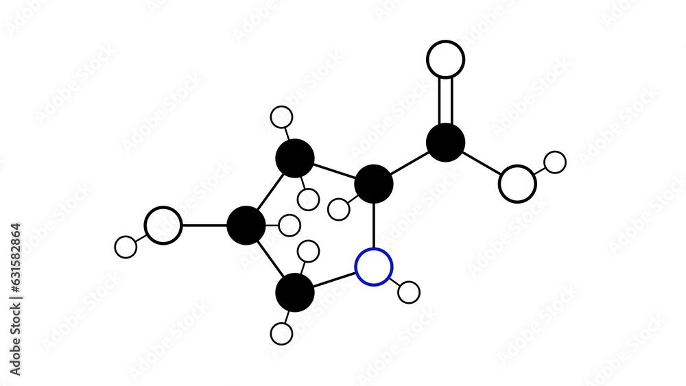 hydroxyproline, molecular structures, amino acid, 3d model, Structural ...