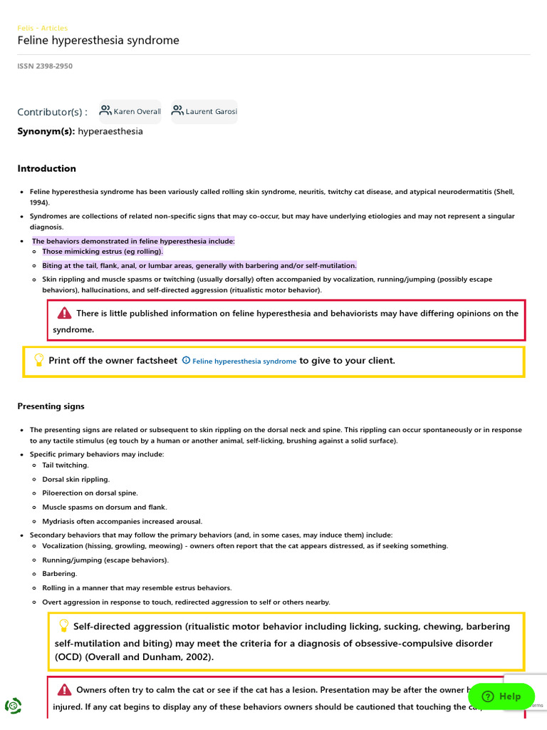 Behavior Feline Hyperesthesia Syndrome* - VetLearn.com