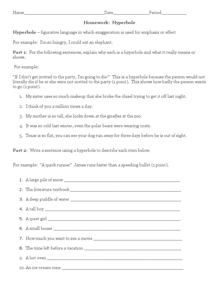 Hyperbole worksheet - Worksheets Library