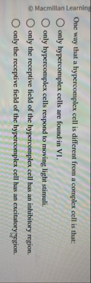 Solved One way that a hypercomplex cell is different from a | Chegg.com