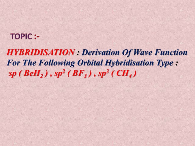 HYBRIDISATION : Derivation Of Wave Function For The Following Orbital ...