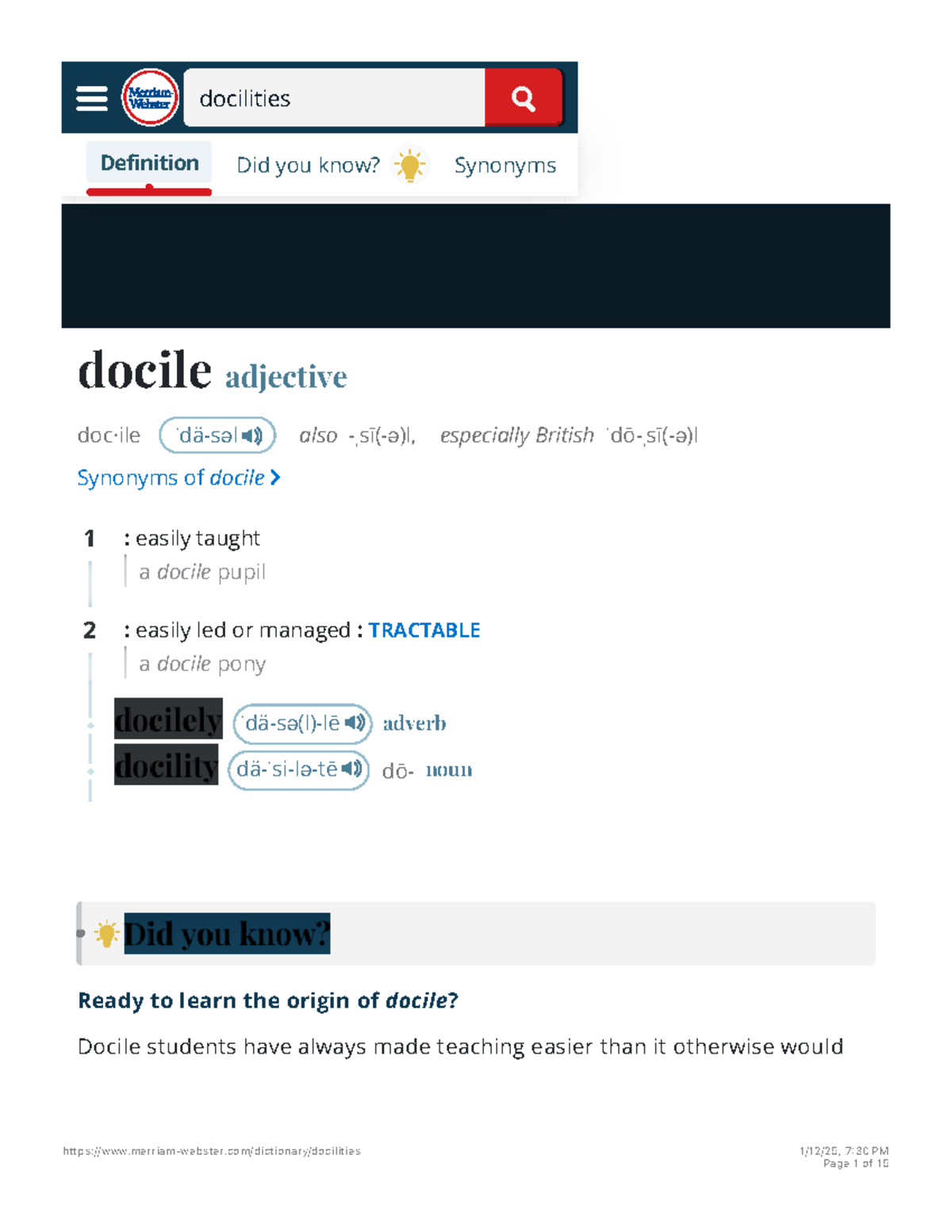 Docilities Definition & Meaning - Merriam-Webster - docile adjective ...