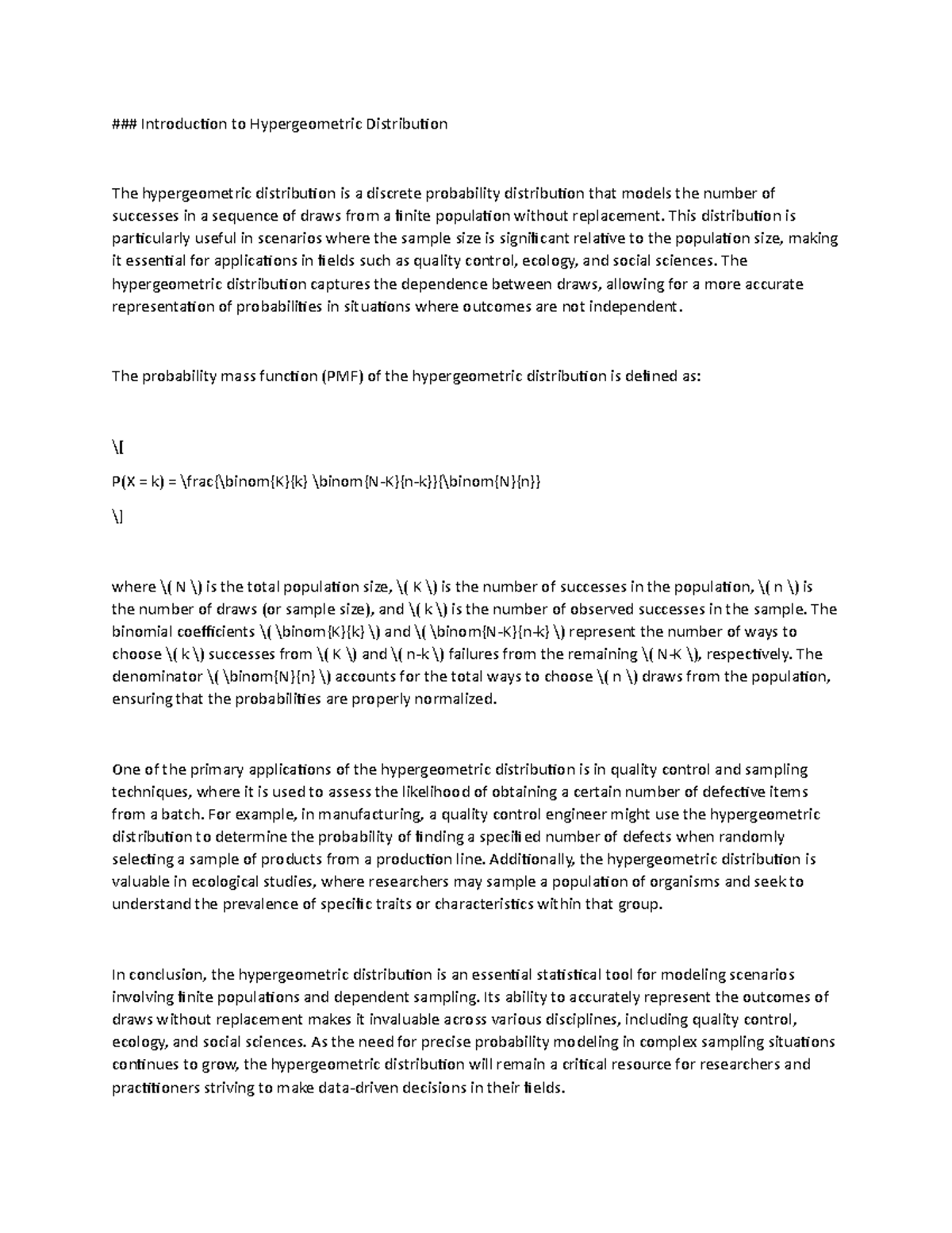 SOLUTION: Introduction To Statistical Hypergeometric Distribution Notes ...