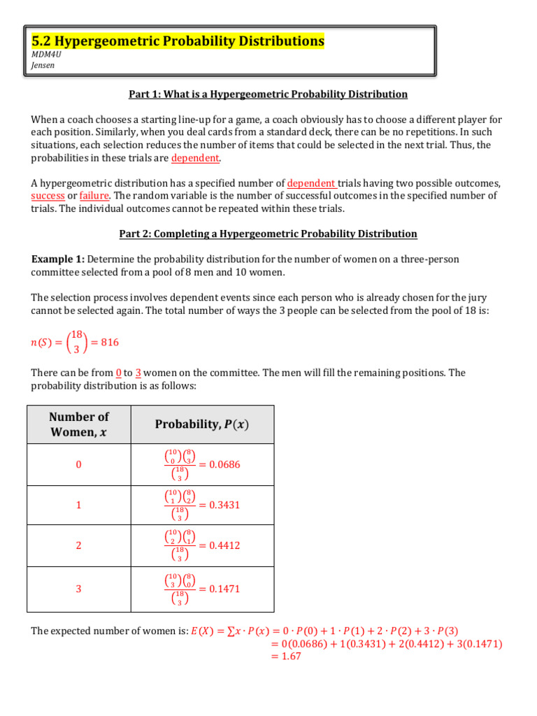 Hypergeometric Distribution Examples at Cathy Bible blog