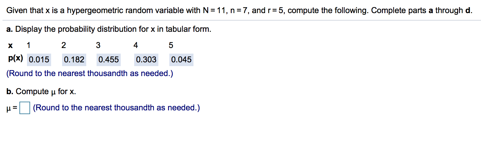 Solved W3SAQ-026. Given that x is a hypergeometric random | Chegg.com