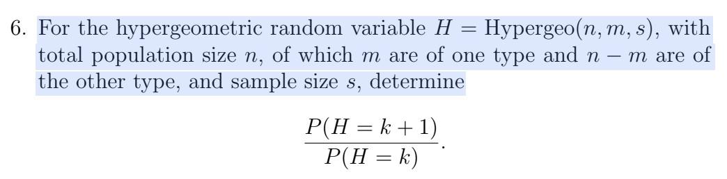 Solved 6. For the hypergeometric random variable H | Chegg.com