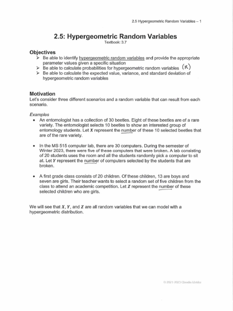 2.5 Hypergeometric Random Variables COMPLETED | PDF