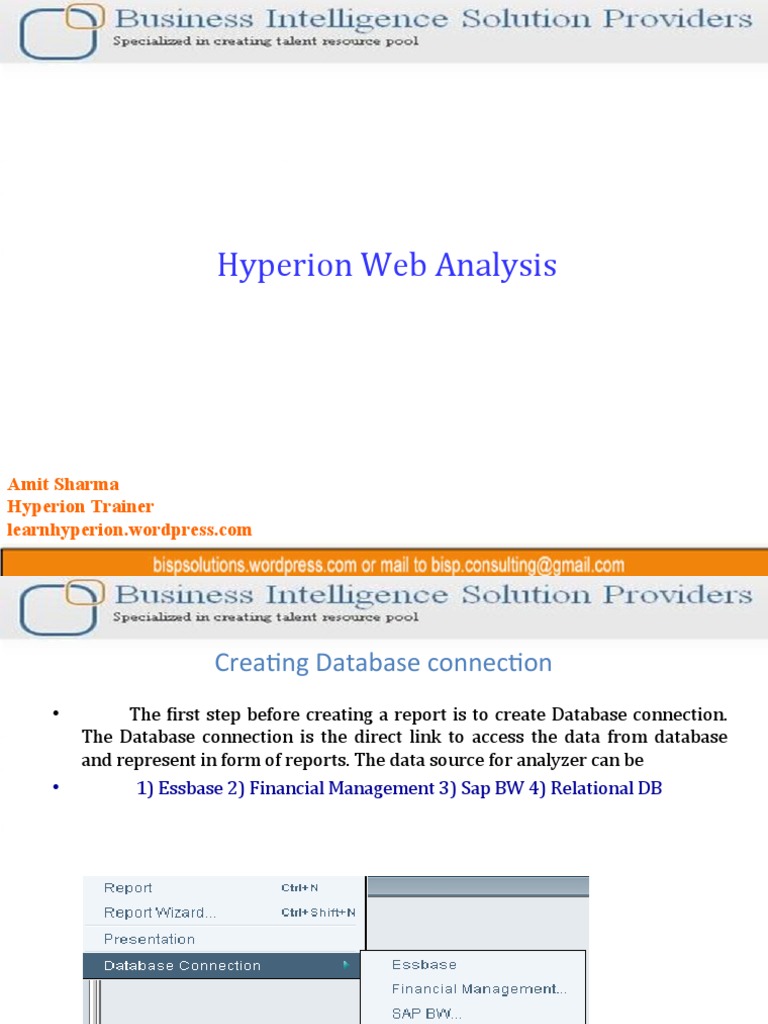 Hyperion Database Connection Guide | PDF | Databases | Microsoft Excel