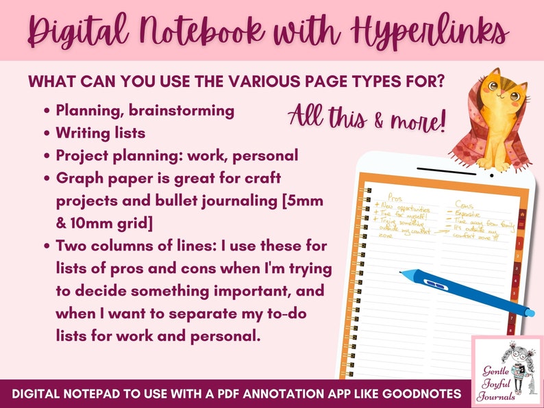 Digital Notebook With Cats 12 Custom Sections Hyperlinked Notepad to ...