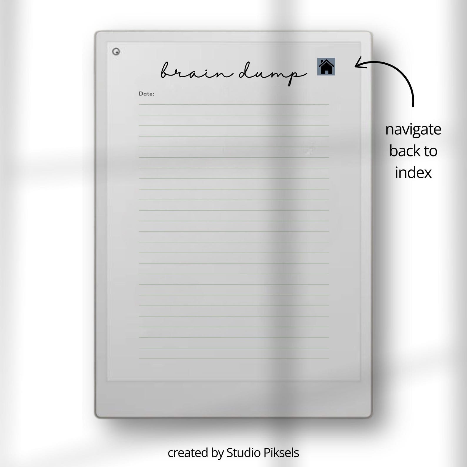 Hyperlinked Brain Dump Template for Remarkable 2, Notebook for ...