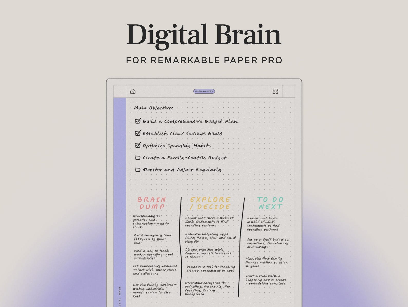 Digital Brain for Remarkable Paper Pro | Brain Dump Template ...