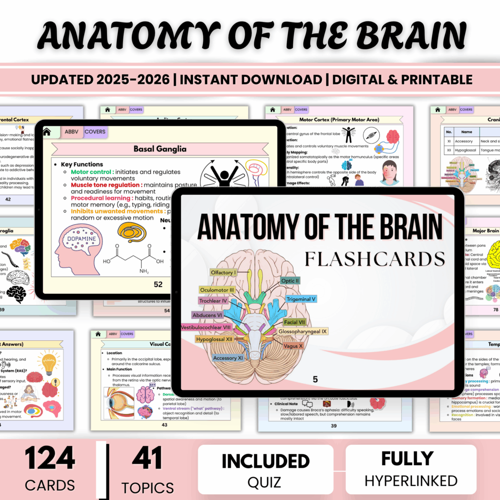 Anatomy Physiology of a Brain Flashcards, Hyperlinked 100+ Cards, 2026 ...