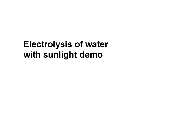 Electrolysis of water with sunlight demo Example of