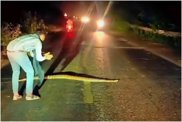 Viral Video: Man Helps Huge Python To Cross Road By Clapping, Halting ...