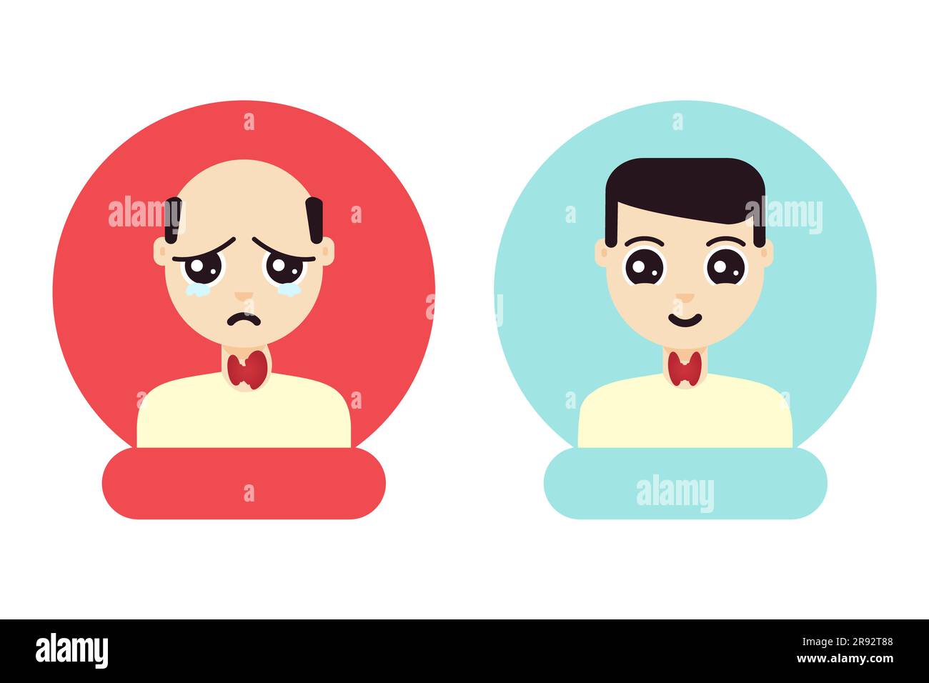 Healthy thyroid gland and hyperthyroidism symbols made in cartoon style ...