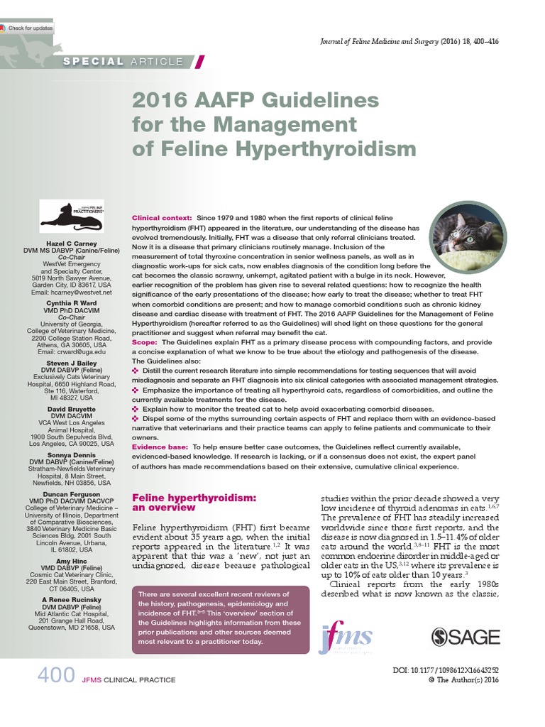 2016 AAFP Guidelines for the Management of Feline Hyperthyroidism ...