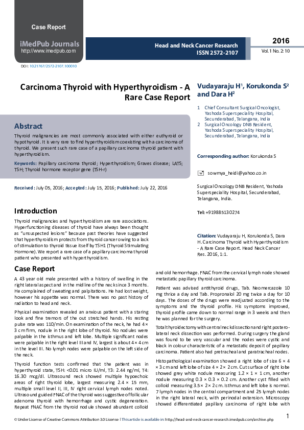 (PDF) Carcinoma Thyroid with Hyperthyroidism - A Rare Case Report
