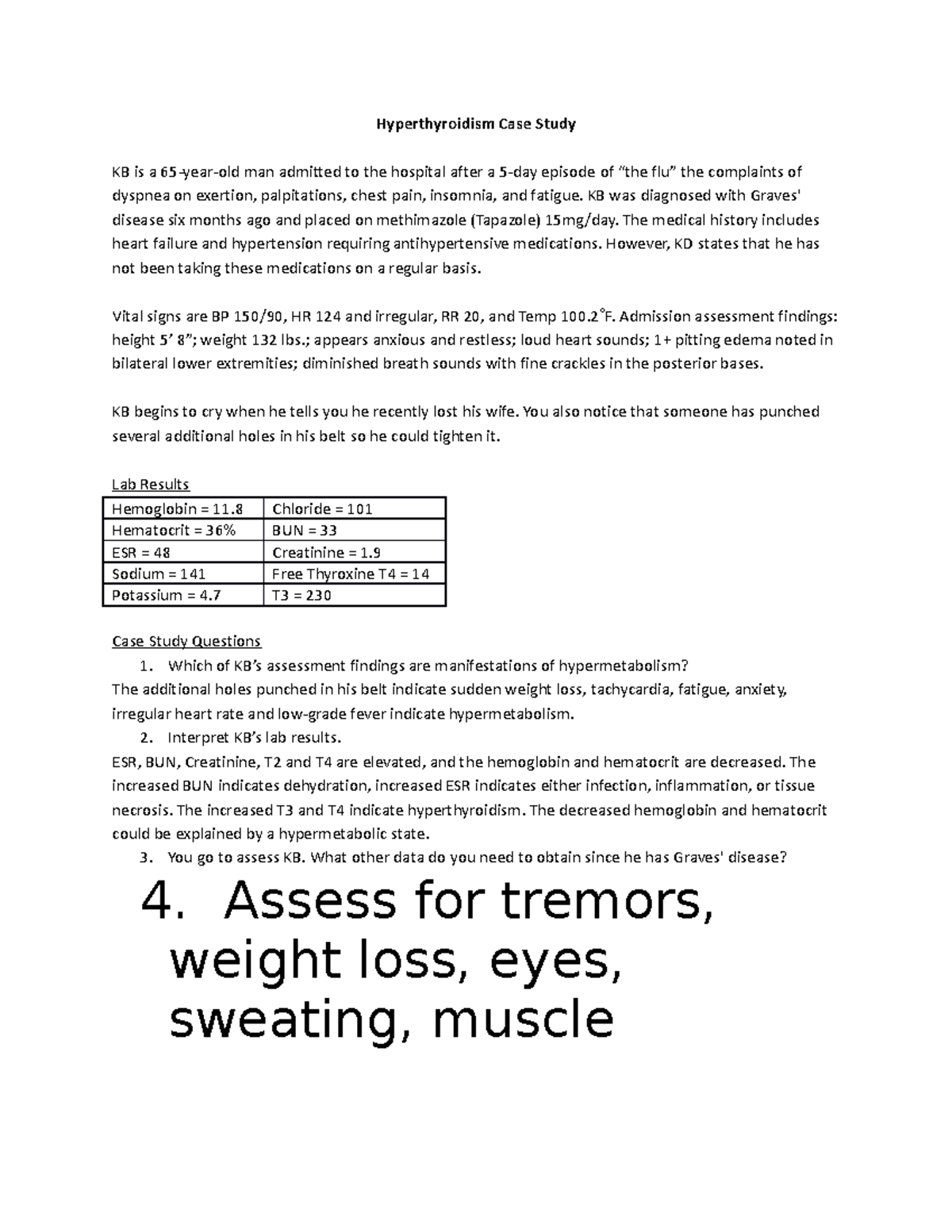 Hyperthyroidism Case Study: K.B.'s Clinical Assessment & Management ...