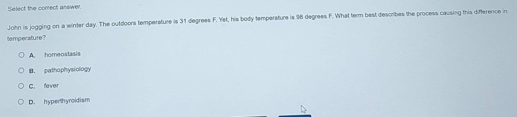 Solved: Select the correct answer. John is jogging on a winter day. The ...