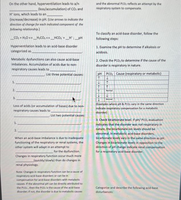Solved On the other hand, hyperventilation leads to a/n | Chegg.com