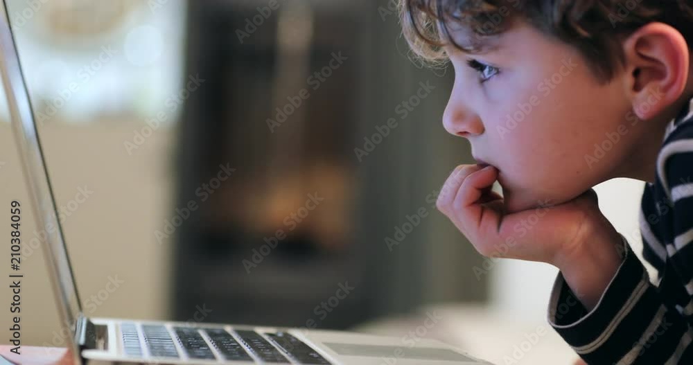 Virus Outbreak Education Smiling Child Hypnotized By Computer Screen ...
