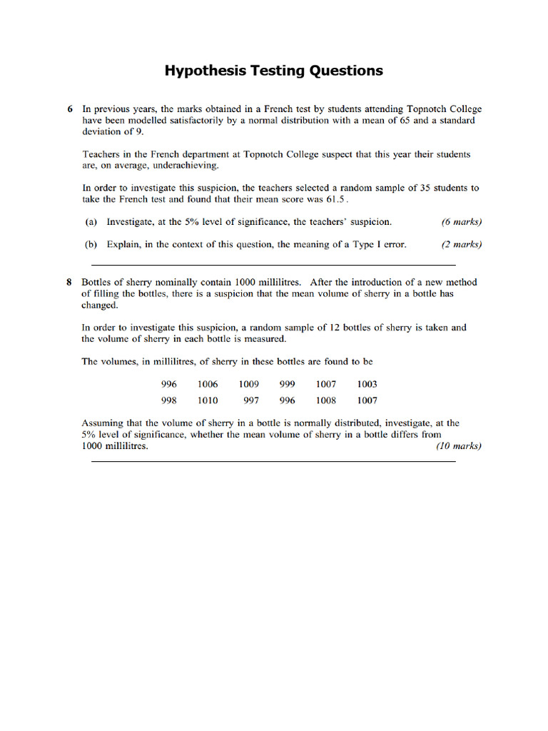Hypothesis Testing Questions: A Level TYS Answers - Emily Learning