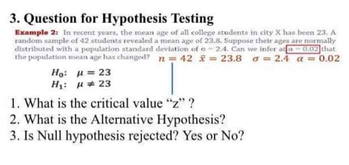 Solved 3. Question for Hypothesis Testing Example 2: In | Chegg.com