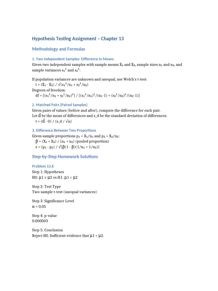 Chapter 10: T-Tests & Two-Sample Hypothesis Testing Methods - Studocu