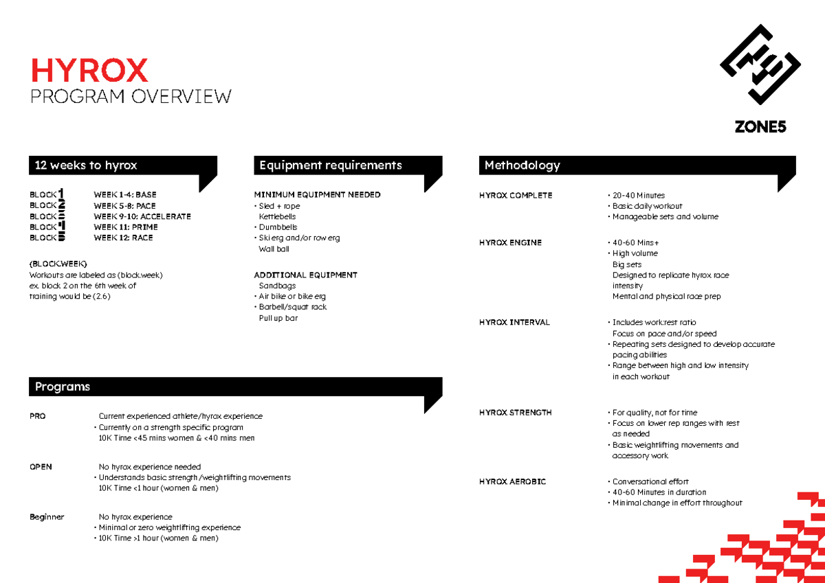 HYROX PROGRAM OVERVIEW: 12-Week Training Plan & Equipment Guide - Studocu