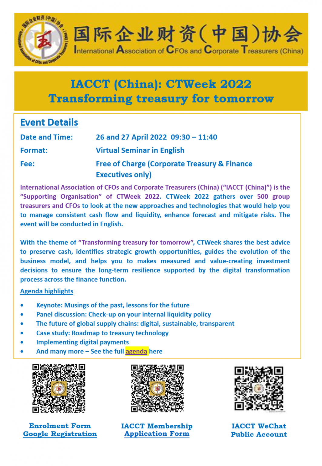 IACCT (China): CTWeek 2022 “Transforming treasury for tomorrow” 财务转型 on ...