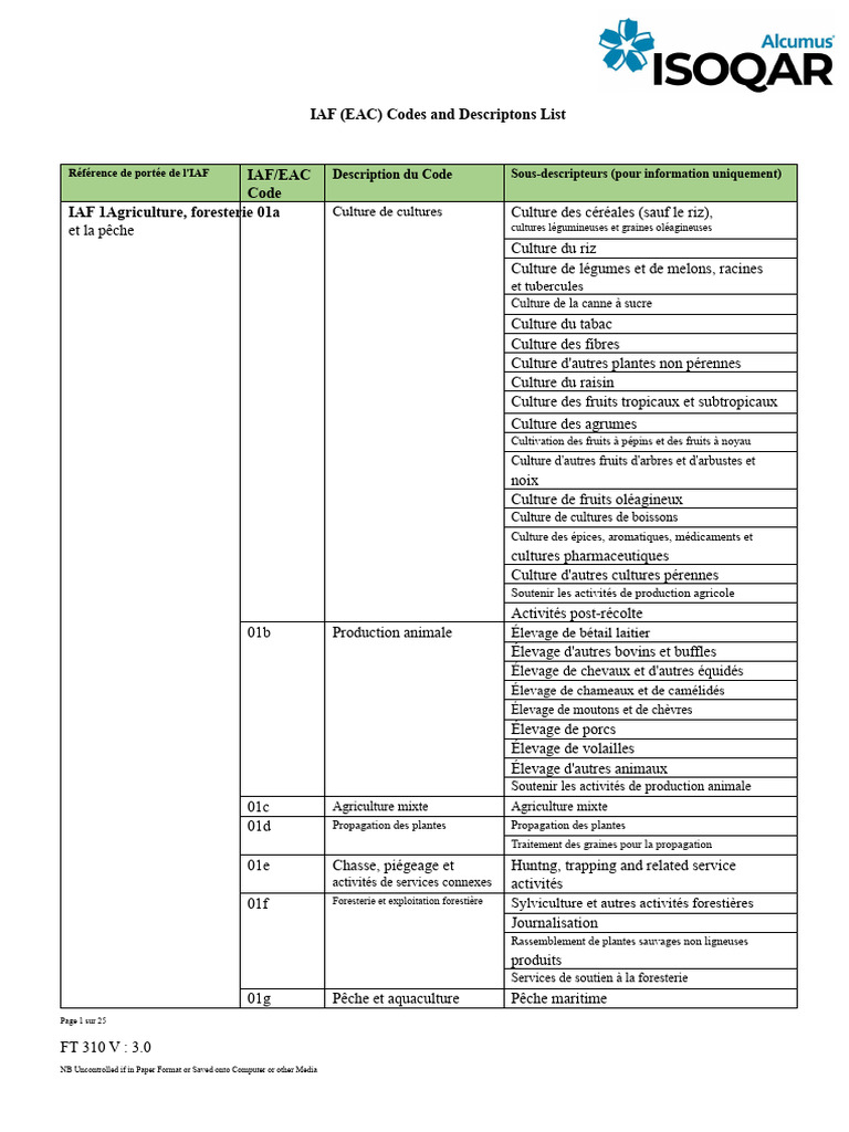 Liste des codes IAF et descriptions | PDF | Les textiles | Boisson