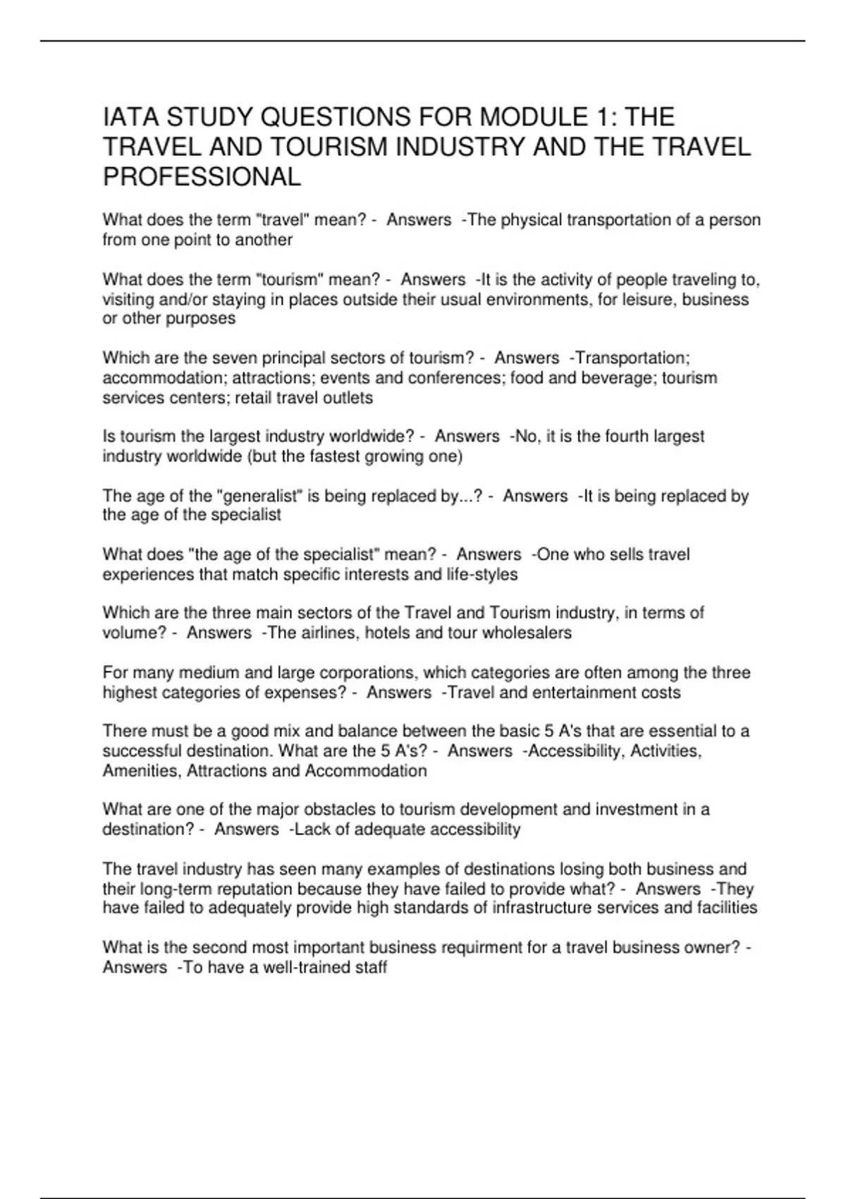 IATA Study Questions for Module 1The Travel and Tourism Industry and ...
