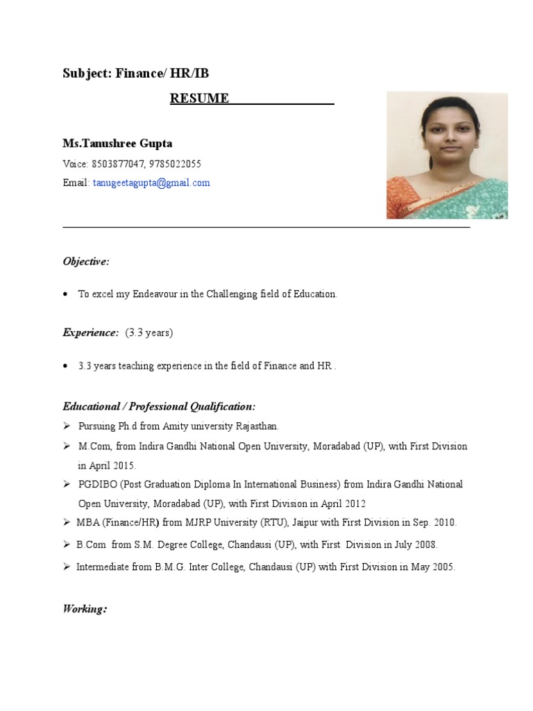 Subject: Finance/ HR/IB Resume: Ms - Tanushree Gupta | Download Free ...