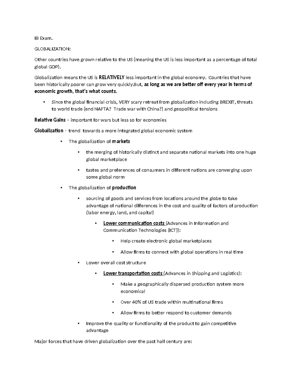 IB Exam short study list - IB Exam. GLOBALIZATION: Other countries have ...