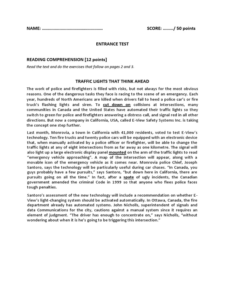 IB Entrance Exam 2012 | PDF | Traffic Light | Traffic