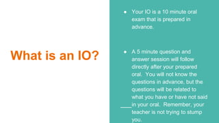 Detailed Powerpoint on the The Individual Oral for the IB | PPTX