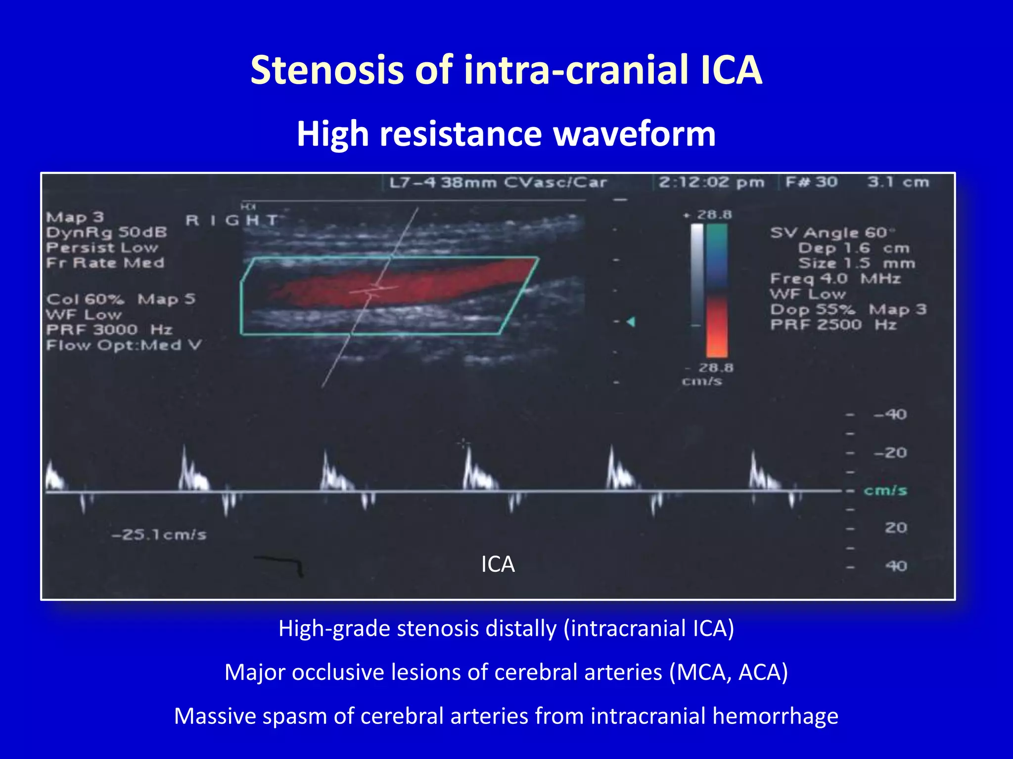 Ultrasound study showing severe stenosis of the right internal carotid ...