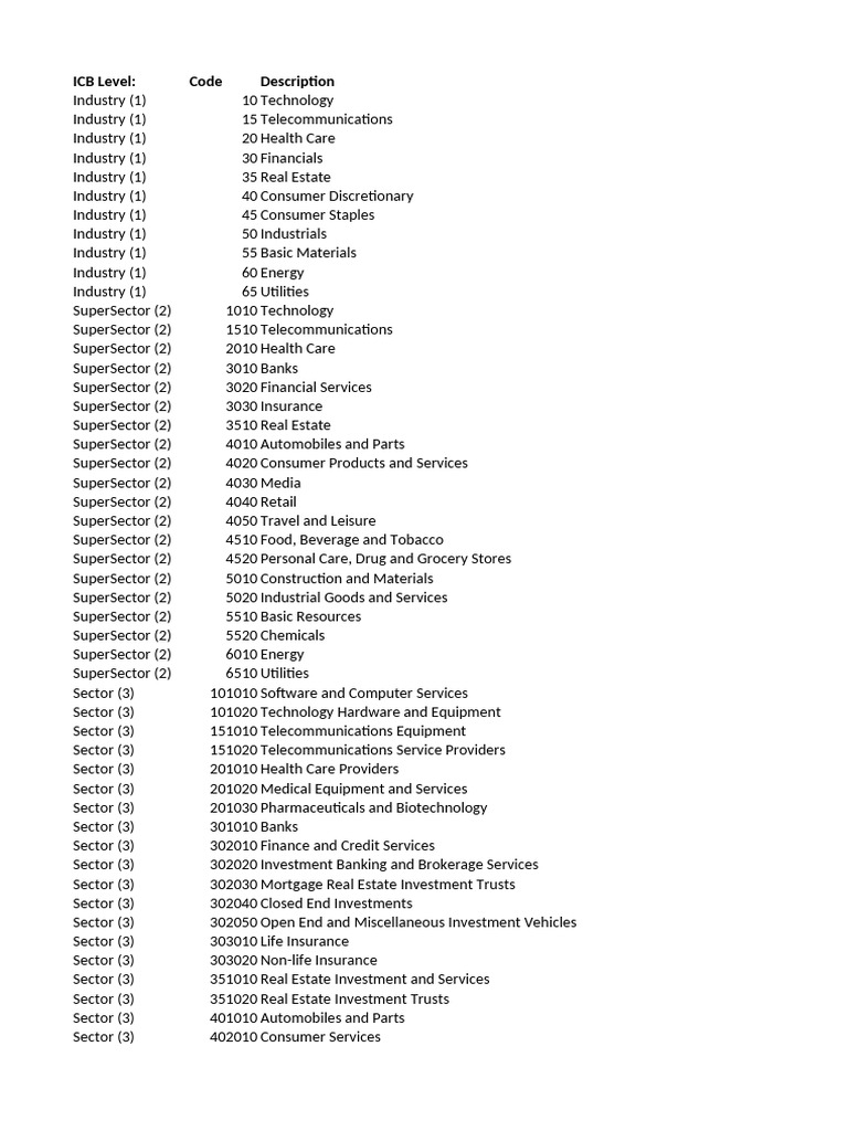 ICB Level: Code Description | PDF | Natural Gas | Petroleum