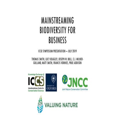 ICCB 2019 presentation: Mainstreaming biodiversity for business | PDF