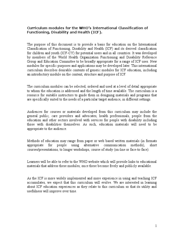 ICF-Curriculum Modules v1 Approved FINAL 1 | PDF | Disability | Curriculum