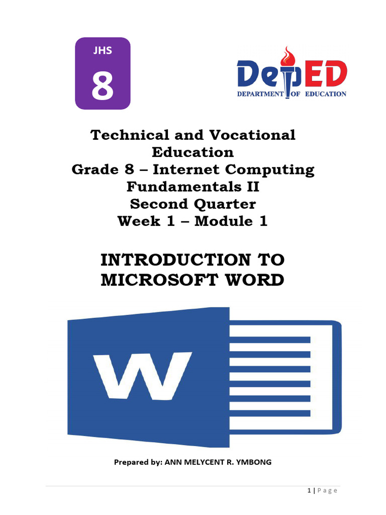 Quarter 1 - Module 1 ICF - Introduction To Microsoft Office Word ...