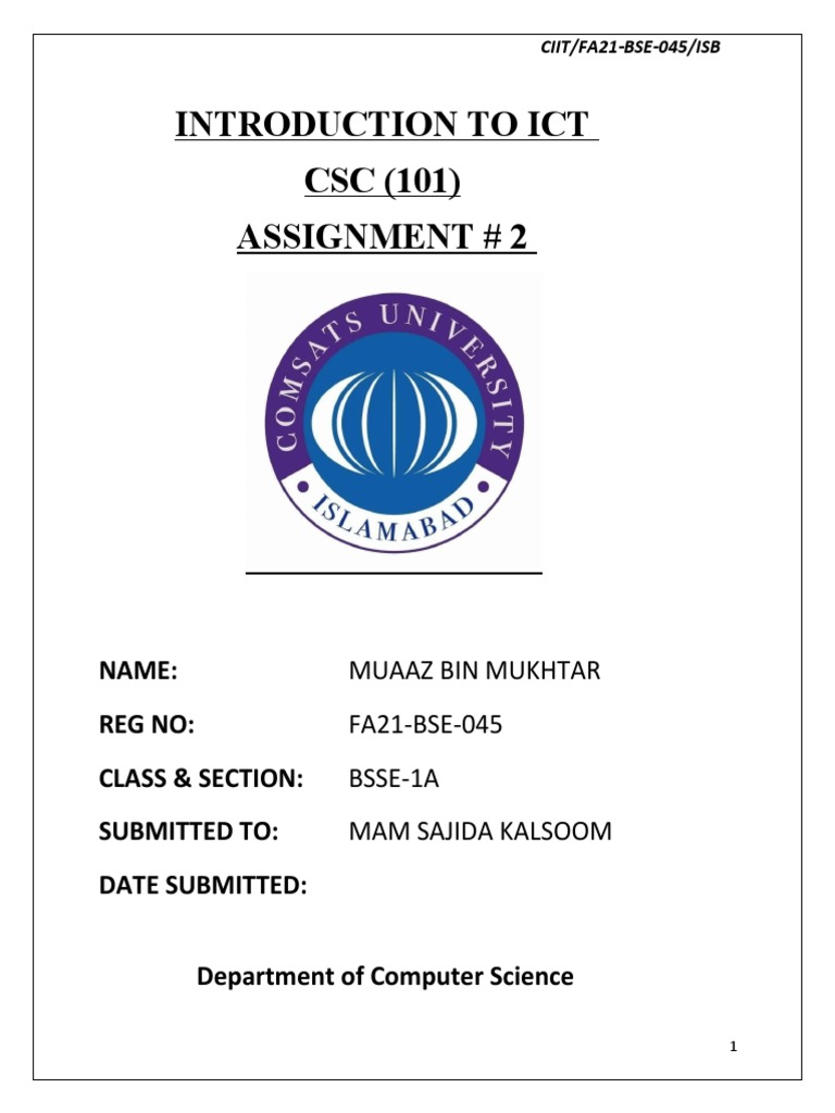 ICT Assignment 2 - COMSATS UNIVERSITY ISLAMABAD, ATD CAMPUS INFORMATION ...