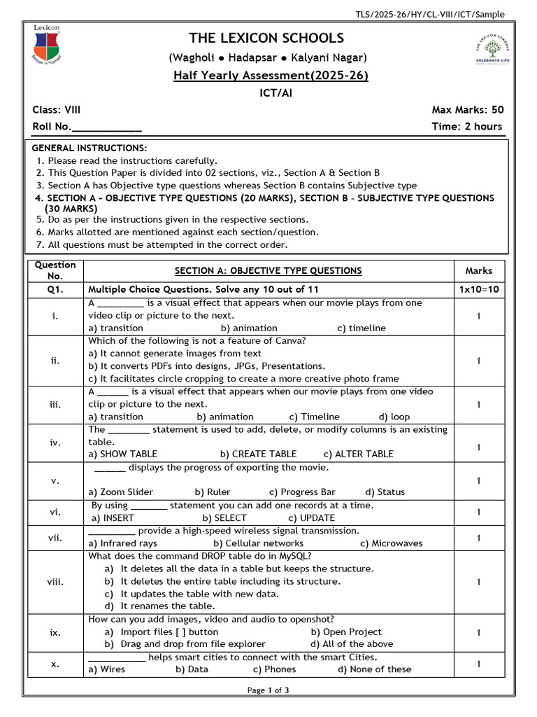 Tls CL Viii Ict Sample Paper-2025 | PDF | Information And ...